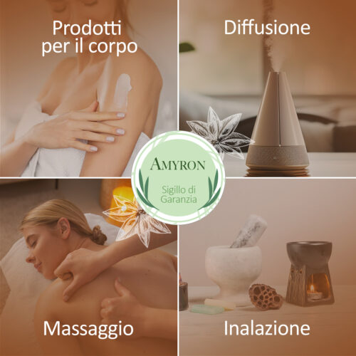 Preparazione di miscele personalizzate: combinabile con altri oli AMYRON per creare sinergie su misura secondo le esigenze emotive o stagionali.